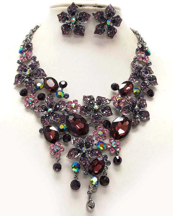 WHOLESALE LUXURY CLASS VICTORIAN STYLE AUSTRIAN CRYSTAL FLOWER PARTY NECKLACE AND EARRING SET 389178