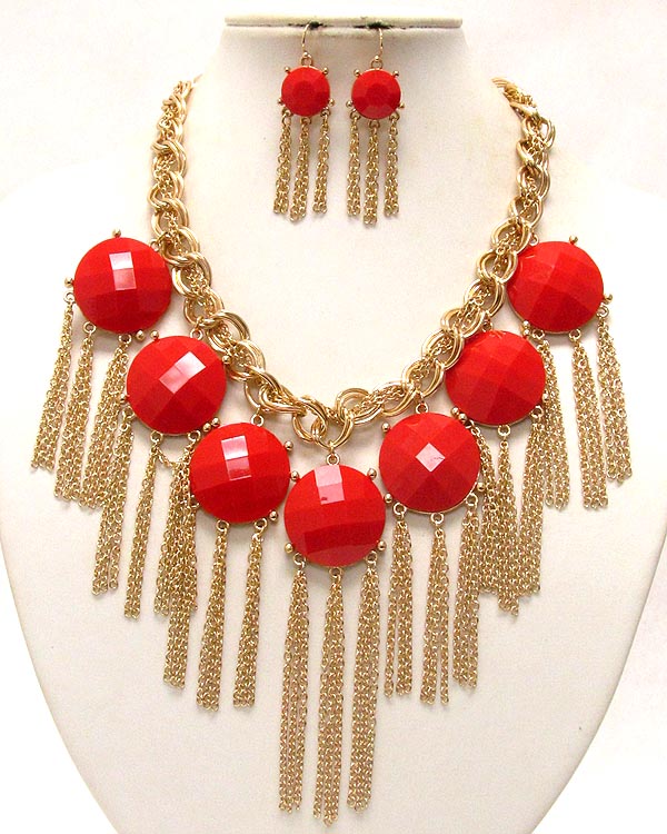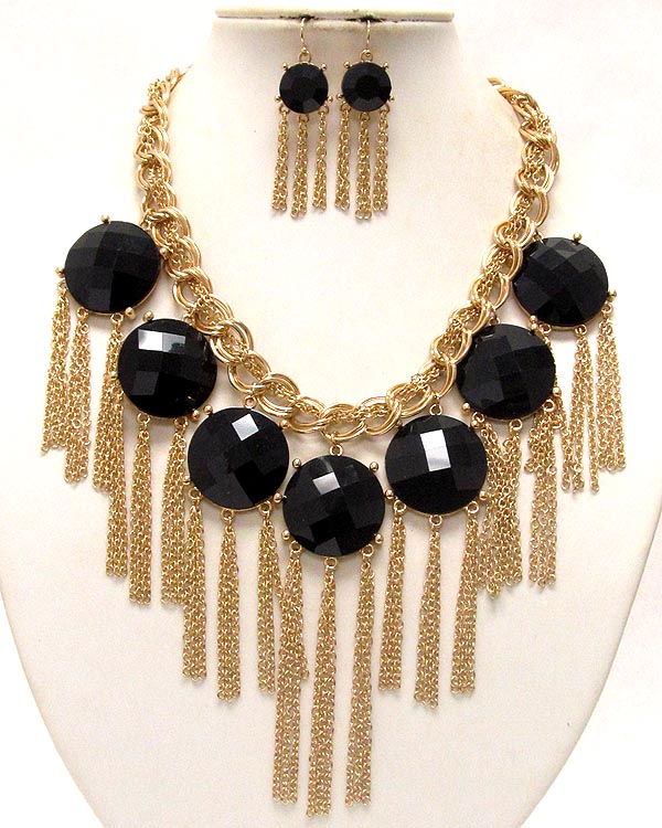 WHOLESALE FACET ACRYLIC STONE AND CHAIN DROP NECKLACE EARRING SET 389251