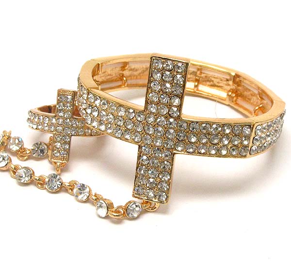 WHOLESALE CRYSTAL PAVE CROSS STRETCH BRACELET AND RING SET 389313