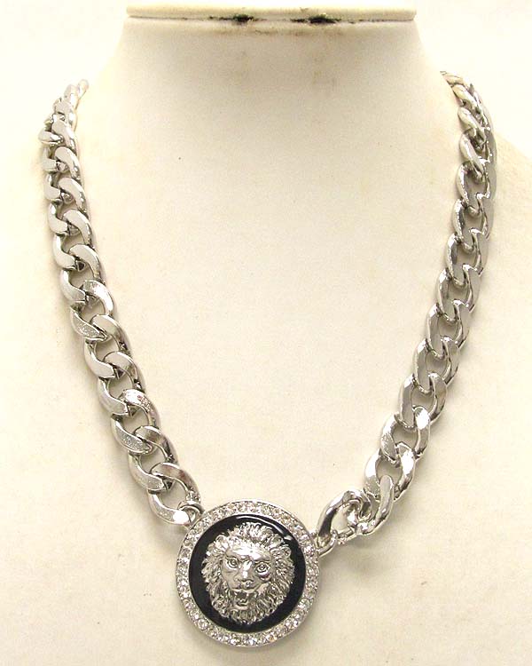 Crystal and epoxy deco lion head rihanna style metal chain necklace