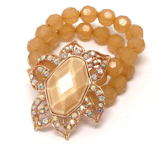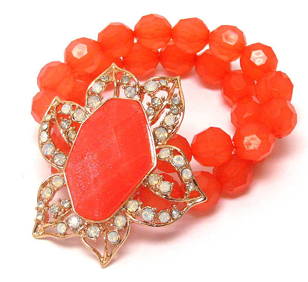 Facet acrylic stone and crystal deco flower stretch bracelet