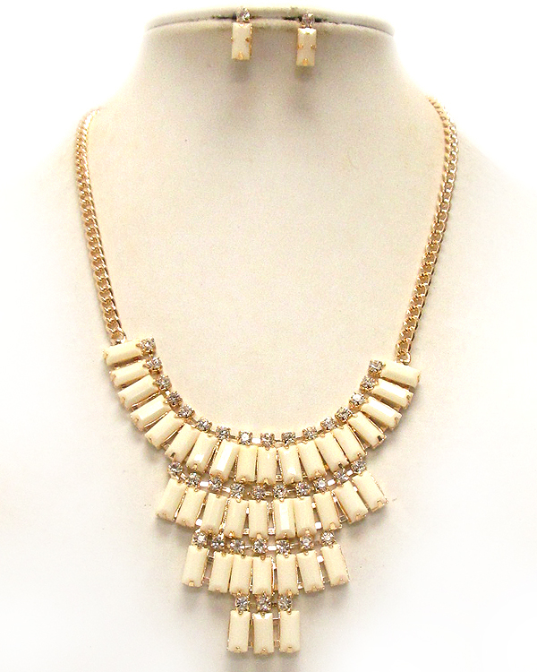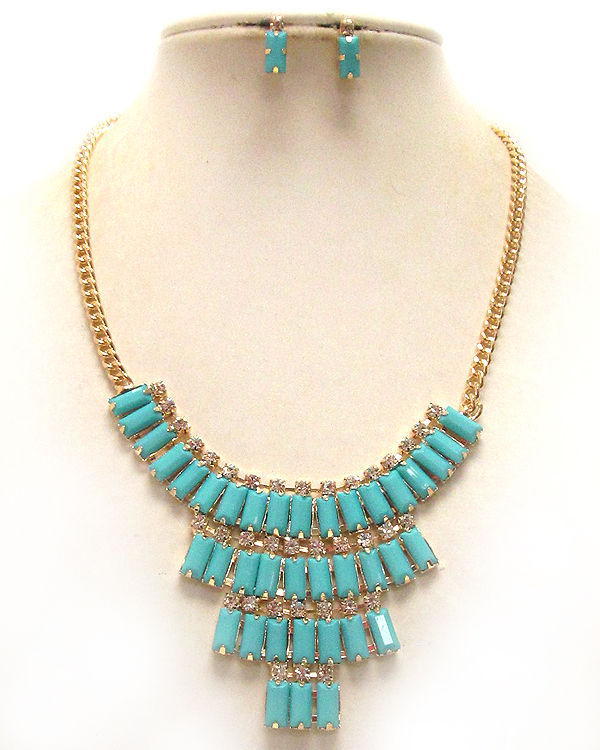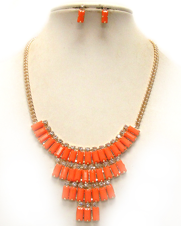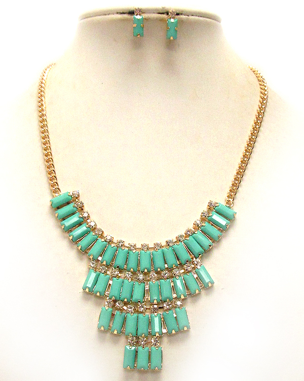 WHOLESALE MULTI CRYSTAL AND ACRYLIC BAGUETTE STONE DECO DROP BIB NECKLACE EARRING SET 389629