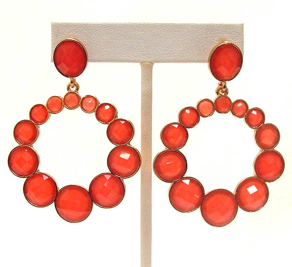 WHOLESALE MULTI SIZE FACET ACRYLIC STONE DECO DROP HOOP EARRING - HOOPS 389682