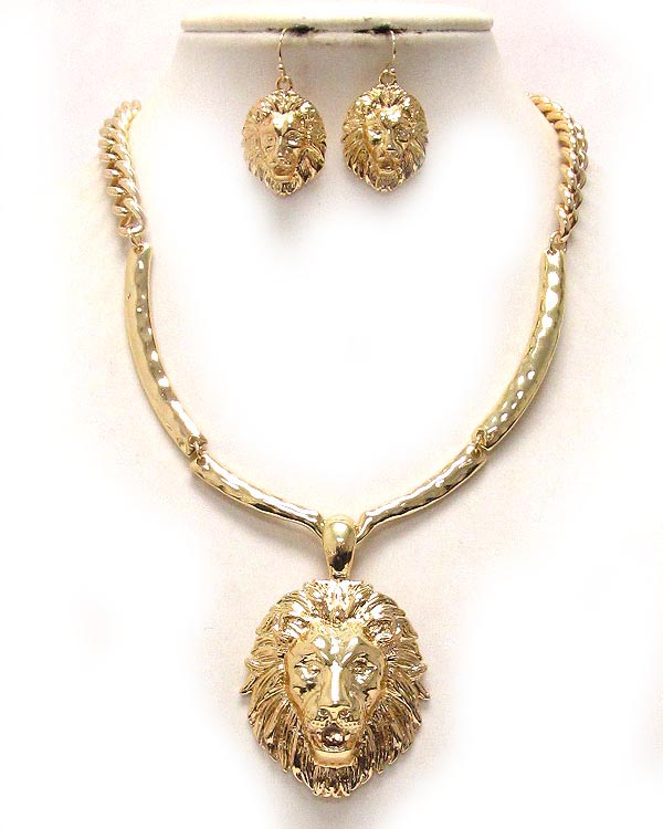 WHOLESALE LION HEAD CHOCKER STYLE NECKLACE AND EARRING SET 389739