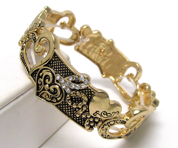 WHOLESALE CRYSTAL DECO LOVE LETTER AND MULTI HEART FILIGREE STRETCH BRACELET 389775
