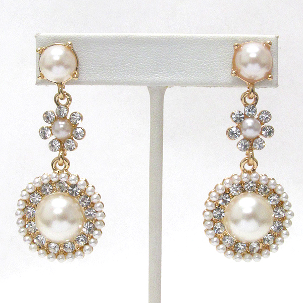 WHOLESALE CRYSTAL AND PEARL CENTER DECO FLOWER DROP EARRING 389815