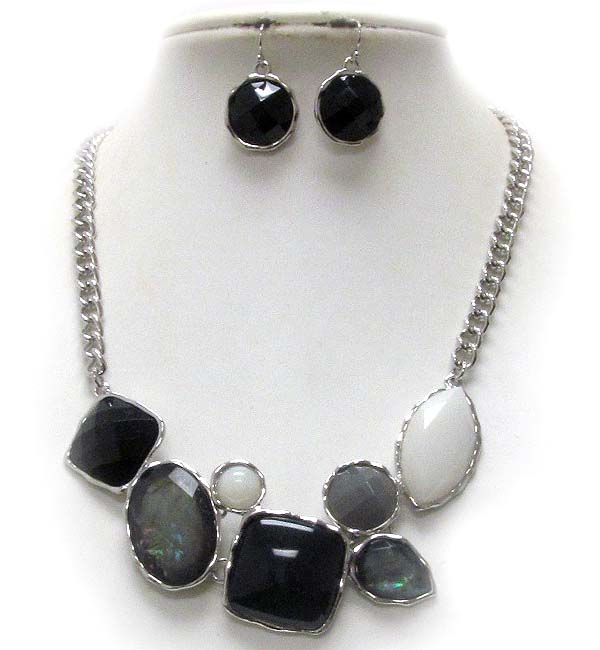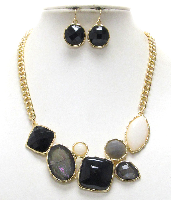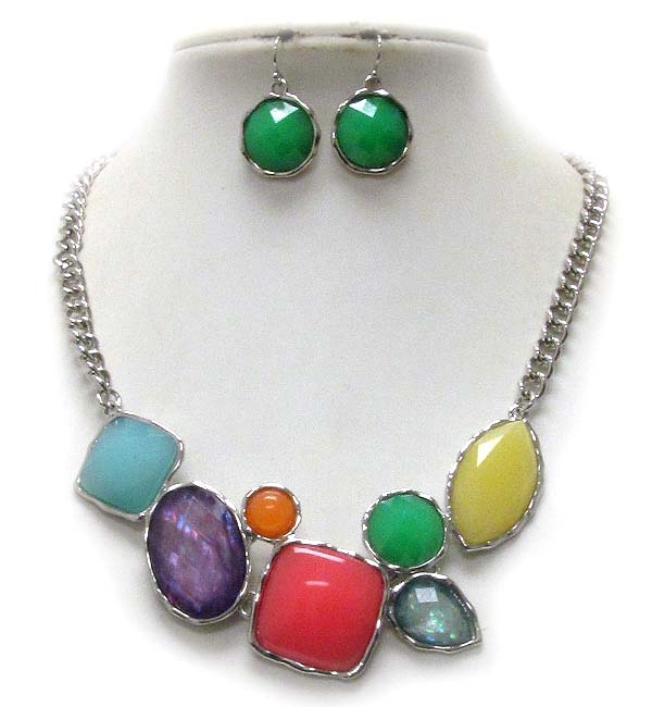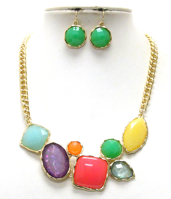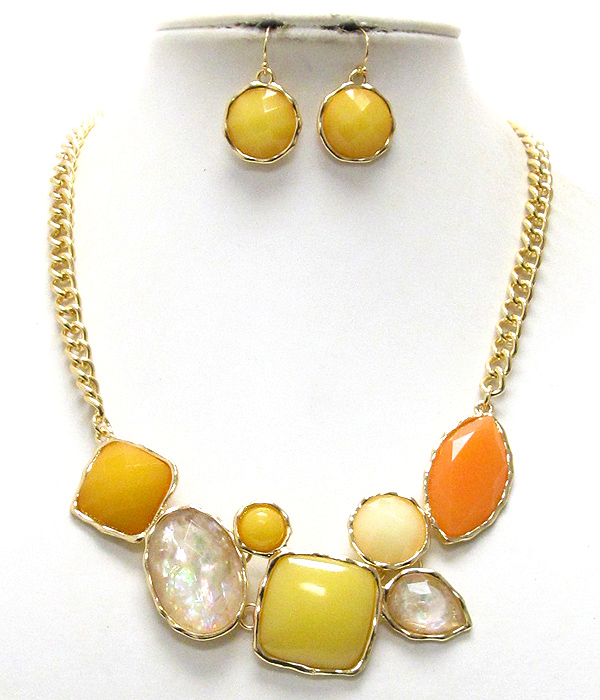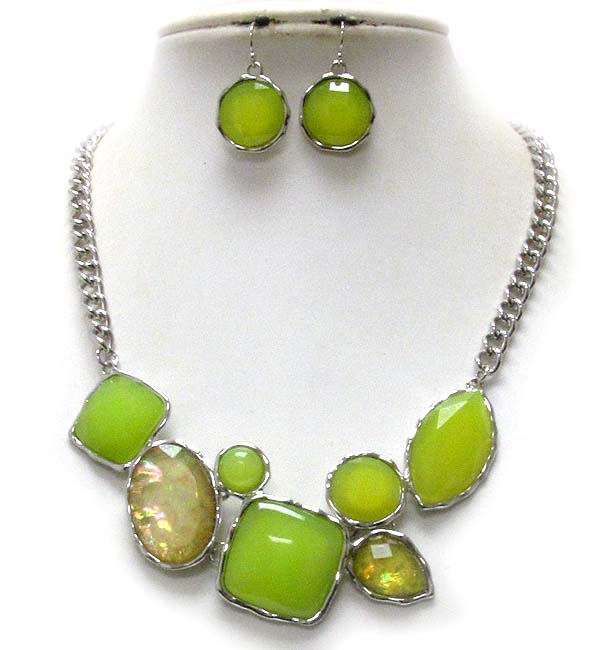 Multi fashion shape shell stone metal chain necklace earring set