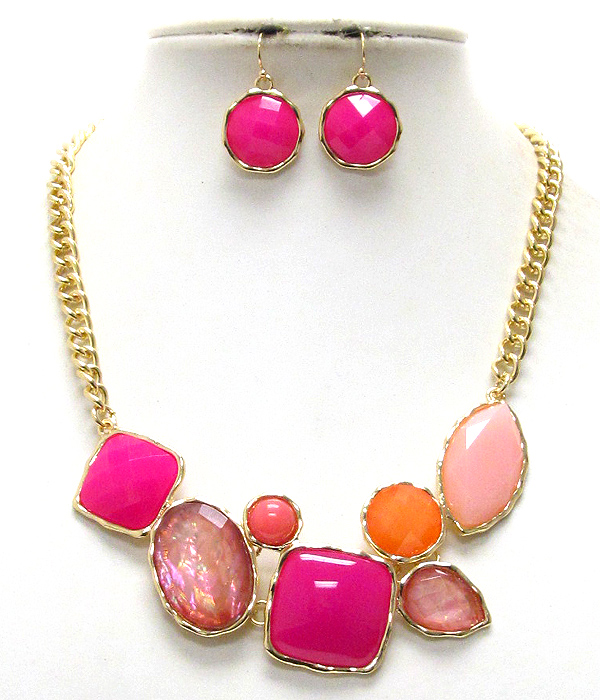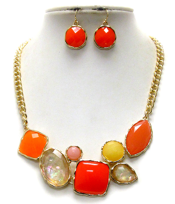 WHOLESALE MULTI FASHION SHAPE SHELL STONE METAL CHAIN NECKLACE EARRING SET 390086