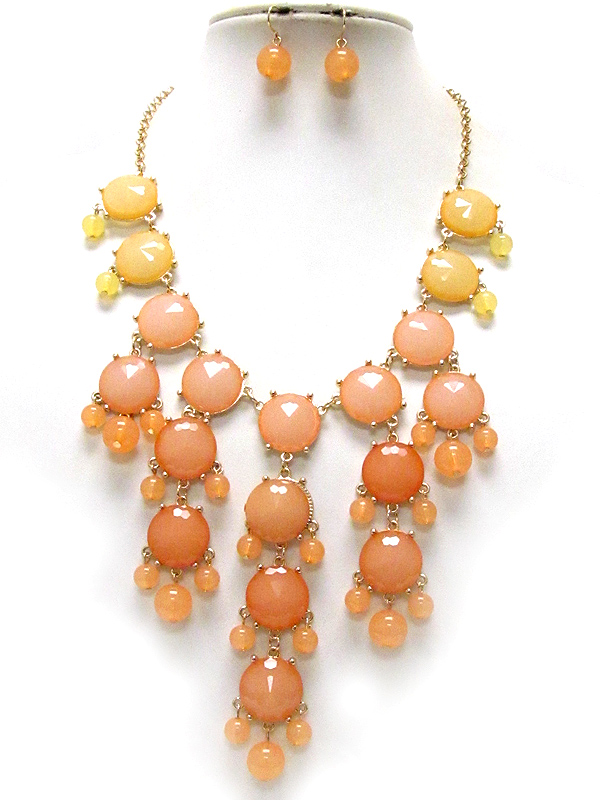 Multi color facet puffy round acrylic stone drop necklace earring set