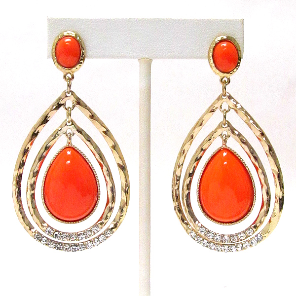 WHOLESALE ACRYLIC TEARDROP STONE AND HAMMERED HOOP EARRING - HOOPS 390354