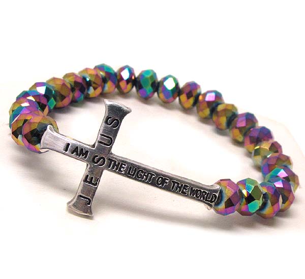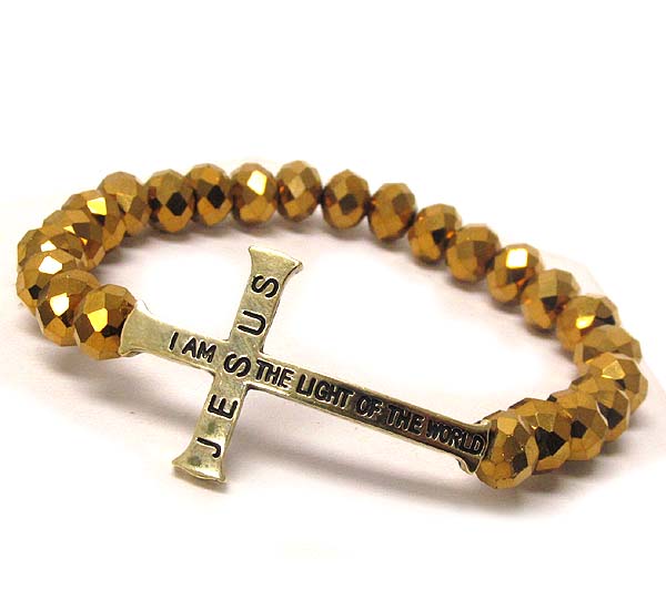 WHOLESALE MESSAGE SIDE CROSS AND GLASS BEAD STRETCH BRACELET 390445