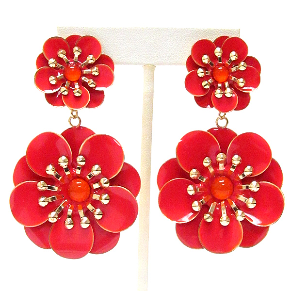 WHOLESALE ACRYLIC AND EPOXY DECO DOUBLE FLOWER DROP EARRING 390519