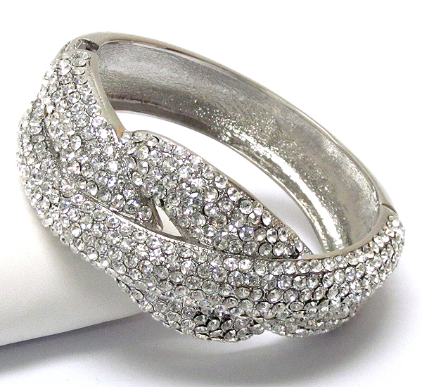 WHOLESALE CRYSTAL PAVE TRIPLE METAL BAND DECO HINGE BANGLE 390575