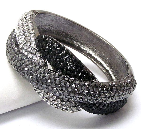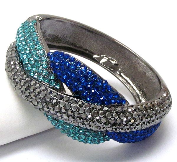 Crystal pave triple metal band deco hinge bangle