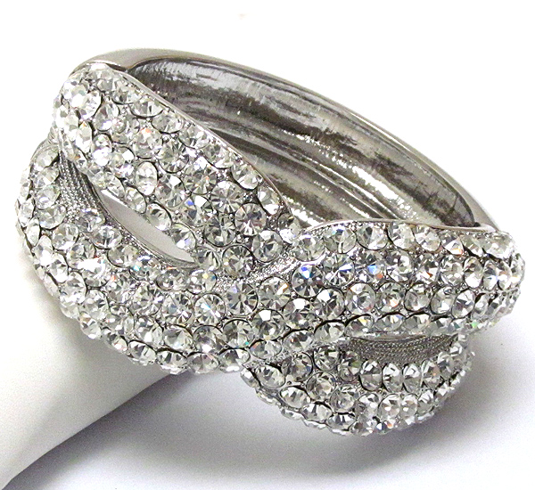 WHOLESALE CRYSTAL PAVE CROSSING LINE DECO HINGE BANGLE 390593
