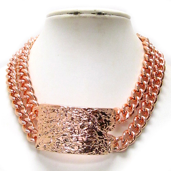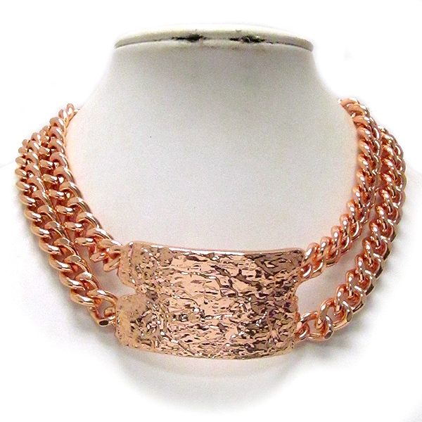 Textured and curved metal plate and double metal chain rihanna style chocker necklace