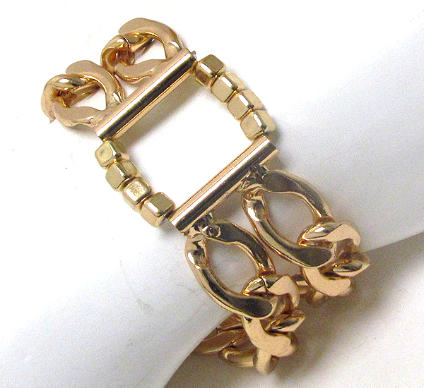 WHOLESALE DOUBLE THICK METAL CHAIN LINK STRETCH BRACELET 390946