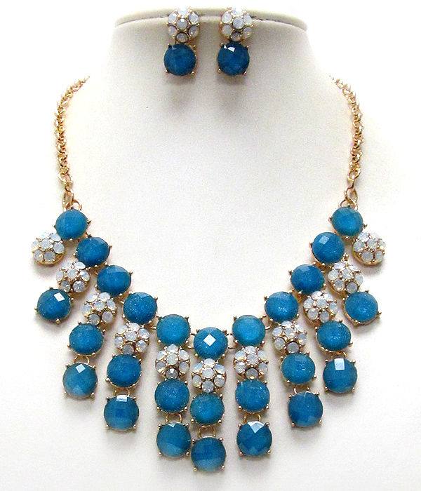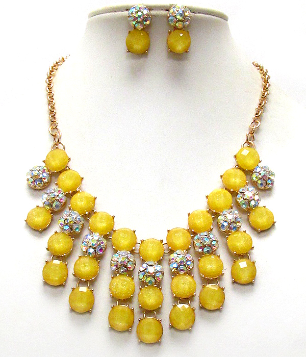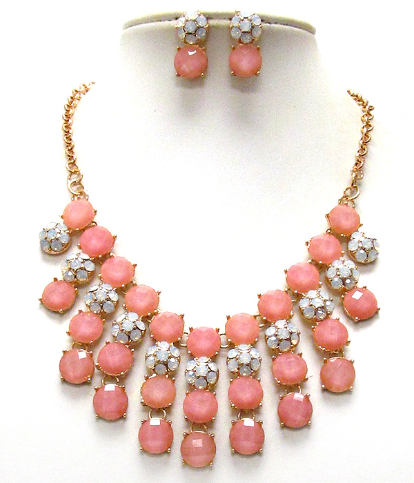 Multi crystal dome and facet acrylic stone link drop necklace earring set