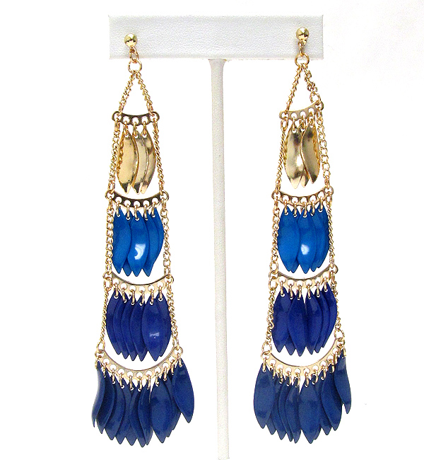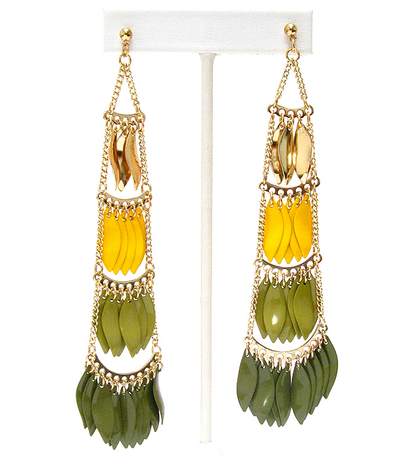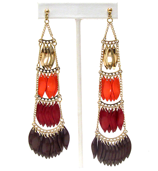 Multi color metal arrowhead drop four tier earring