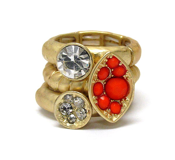 WHOLESALE CRYSTAL DECO DISK AND ARROWHEAD STACKABLE STRETCH RING SET OF 3 391128