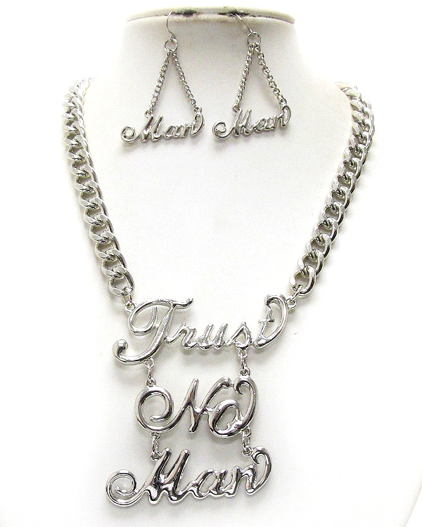 WHOLESALE TRUST NO MAN PENDANT AND CHAIN NECKLACE EARRING SET 391308