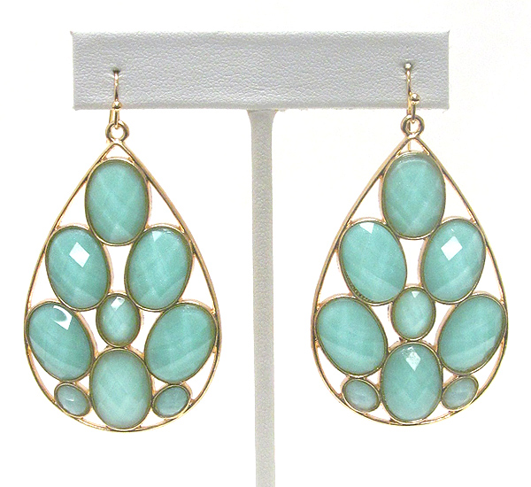WHOLESALE MULTI FACET ACRYLIC OVAL STONE DECO TEAR DROP EARRING 391403