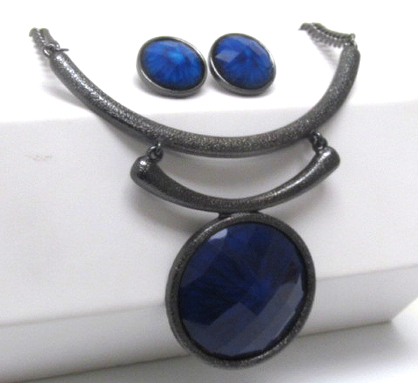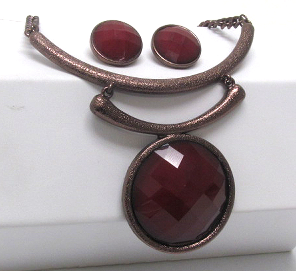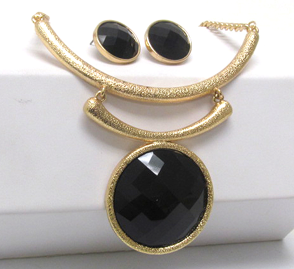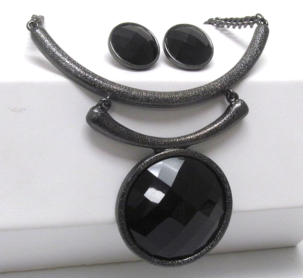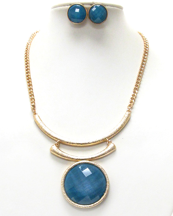 WHOLESALE LARGE SOLE FACE ROUND STONE AND METAL BEAN NECKLACE EARRING SET 391420