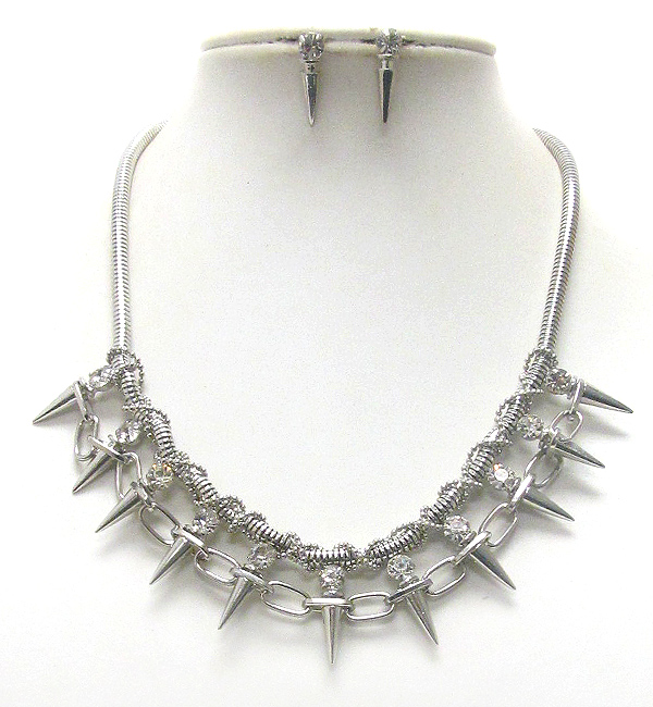 WHOLESALE CRYSTAL AND MULTI SPIKE LINK CHAIN DECO AND SNAKE CHAIN NECKLACE EARRING SET 391431