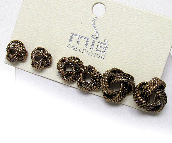 WHOLESALE MULTI TEXTRED ROUND RING STUD 3 PAIR EARRING 391522