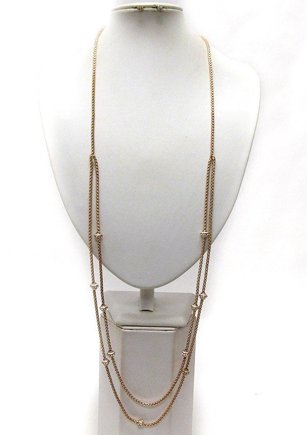 WHOLESALE MULTI CRYSTAL BALL ACCENT DOUBLE LAYER LONG NECKLACE EARRING SET 391536