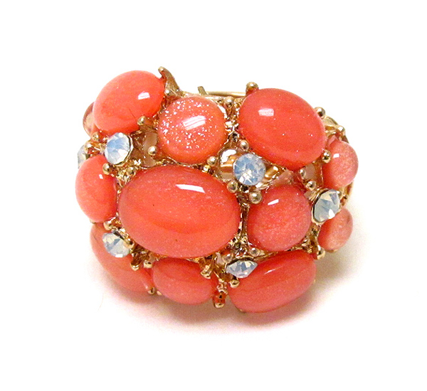Multi crystal and acrylic stone mix stretch ring