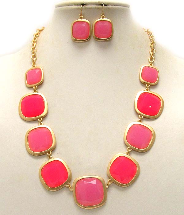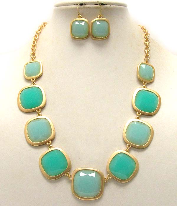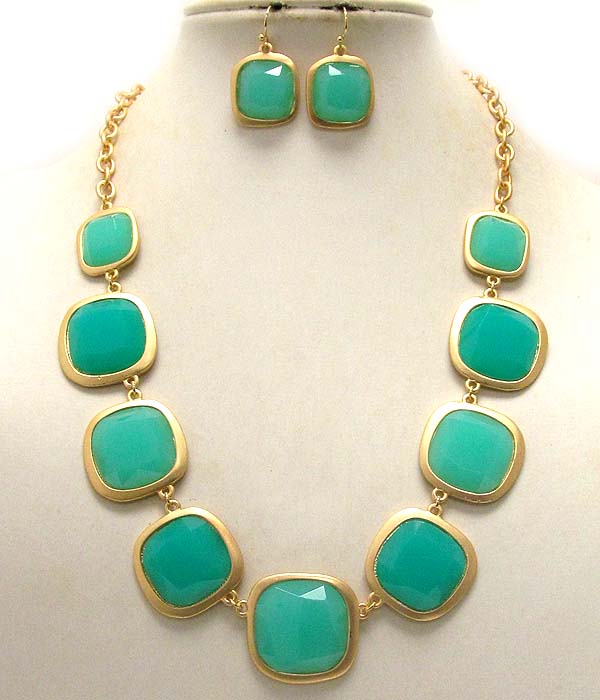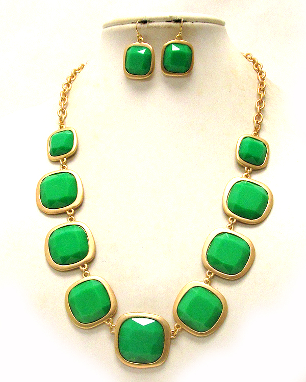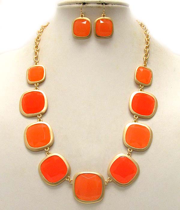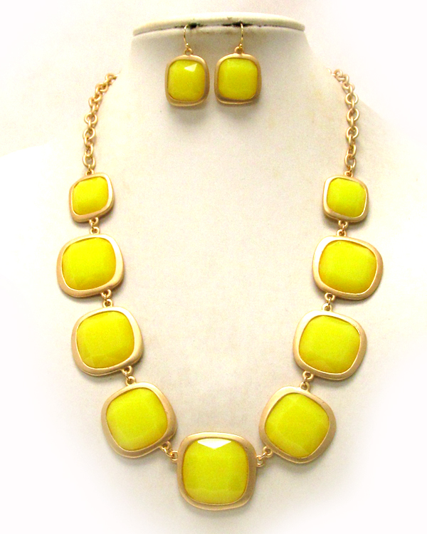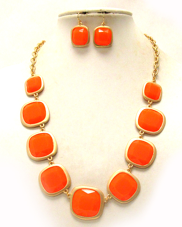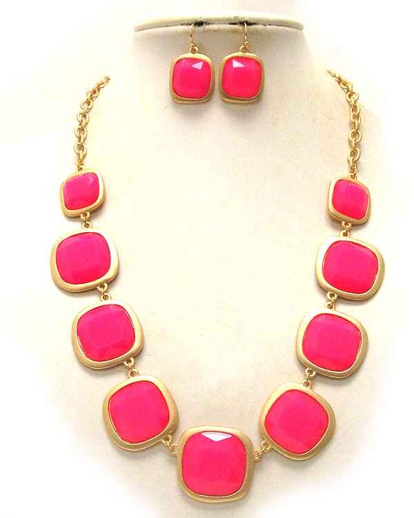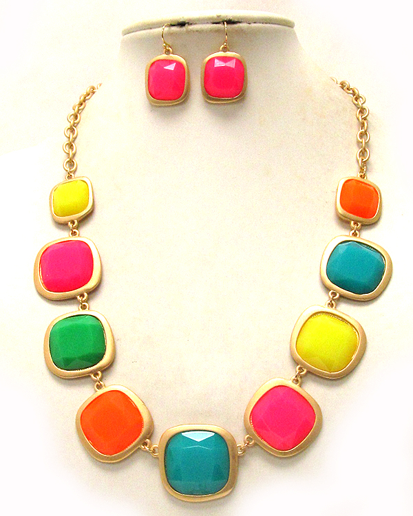 Multi acrylic square stone link necklace earring set