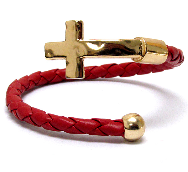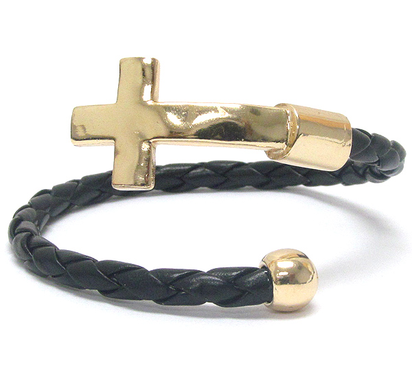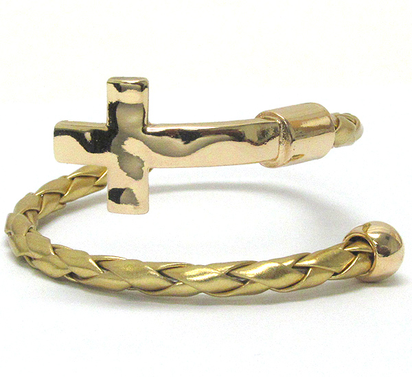 WHOLESALE HAMMERED CROSS TIP AND BRAID WIRE BAND ADJUSTABLE BRACELET 391576