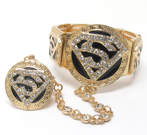 WHOLESALE CRYSTAL SUPERMAN SYMBOL STRETCH BRACELET AND RING SET 391775