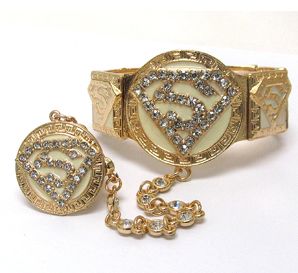Crystal superman symbol stretch bracelet and ring set