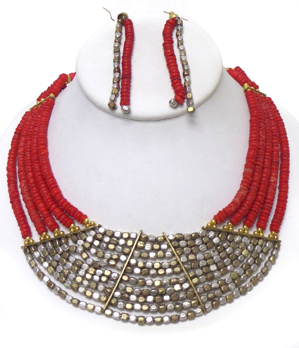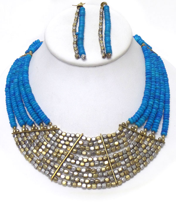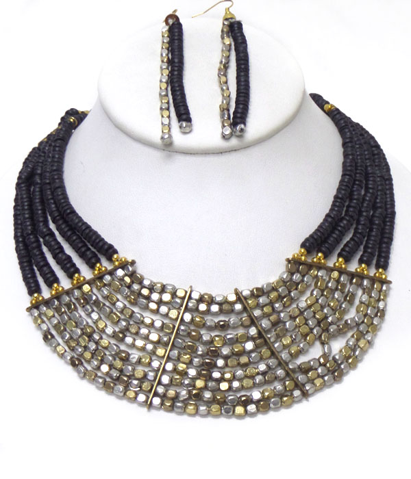 WHOLESALE MULTI CHAIN METAL BEAD DECO NECKLACE EARRING SET 391864