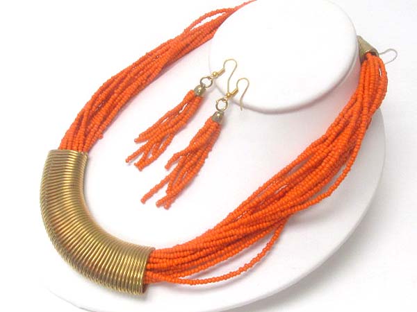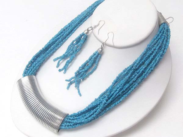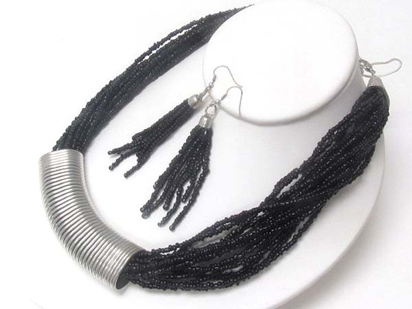 WHOLESALE MULTI CHAIN BEAD THROUGH METAL SPRING TUBE DECO NECKLACE EARRING SET 391865
