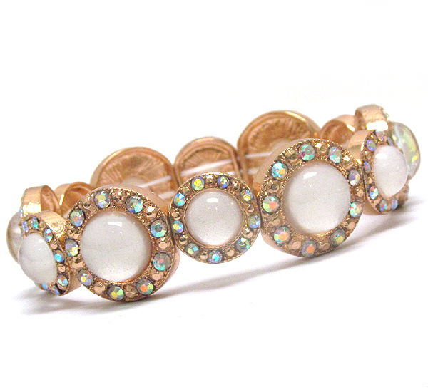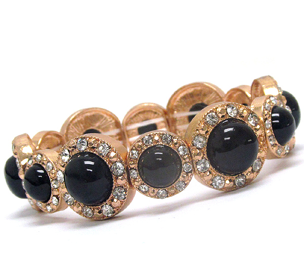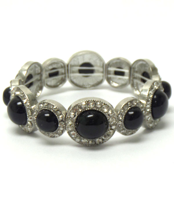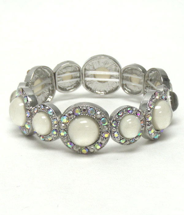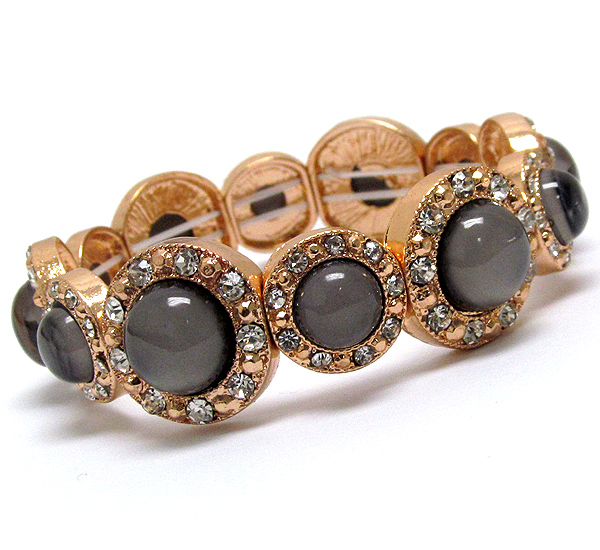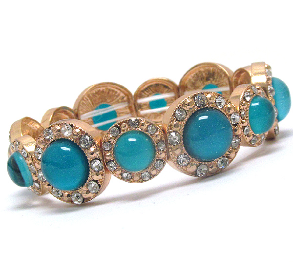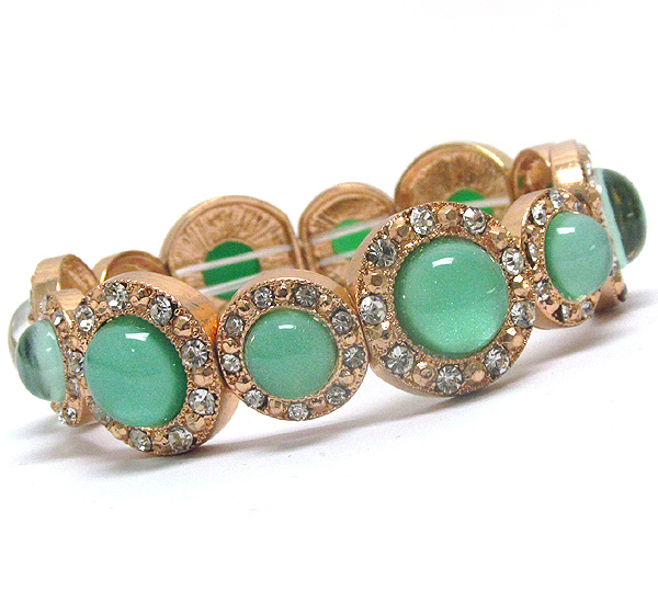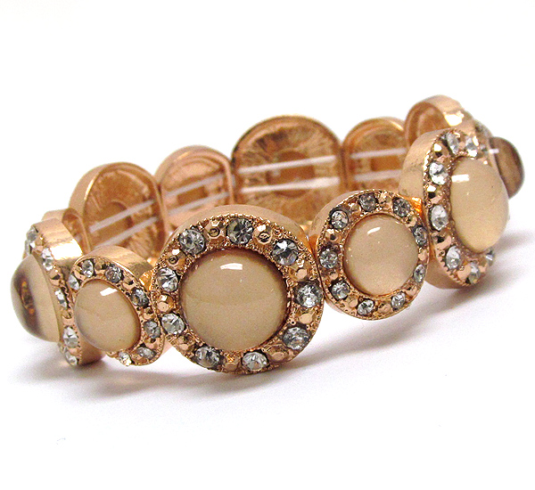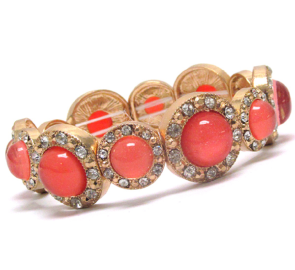 Crystal and acrylic stone deco multi metal disk link stretch bracelet
