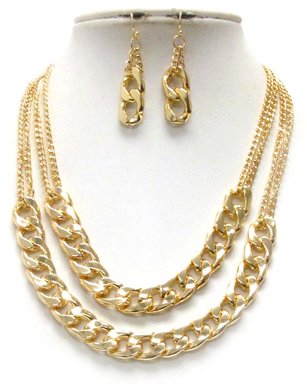 WHOLESALE DOUBLE LAYERED THICK METAL CHAIN NECKLACE EARRING SET 392094