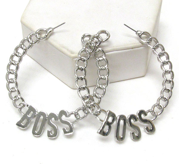 Boss accent metal chain hoop earring - hoops