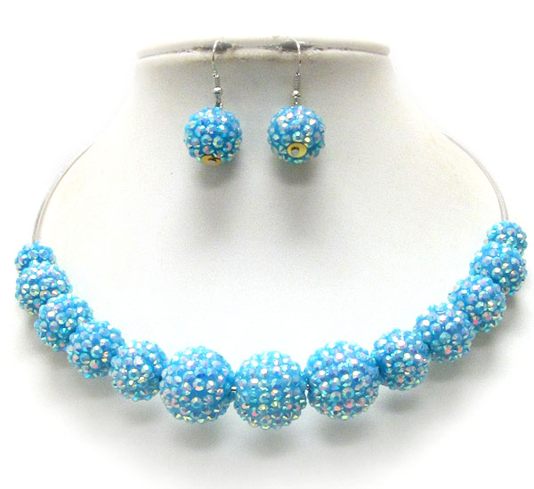 WHOLESALE MULTI CRYSTAL FIREBALL LINK CHOCKER NECKLACE EARRING SET 392146