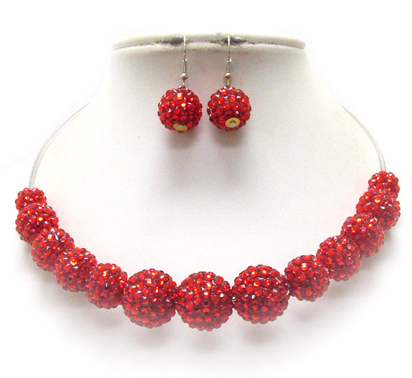 Multi crystal fireball link chocker necklace earring set