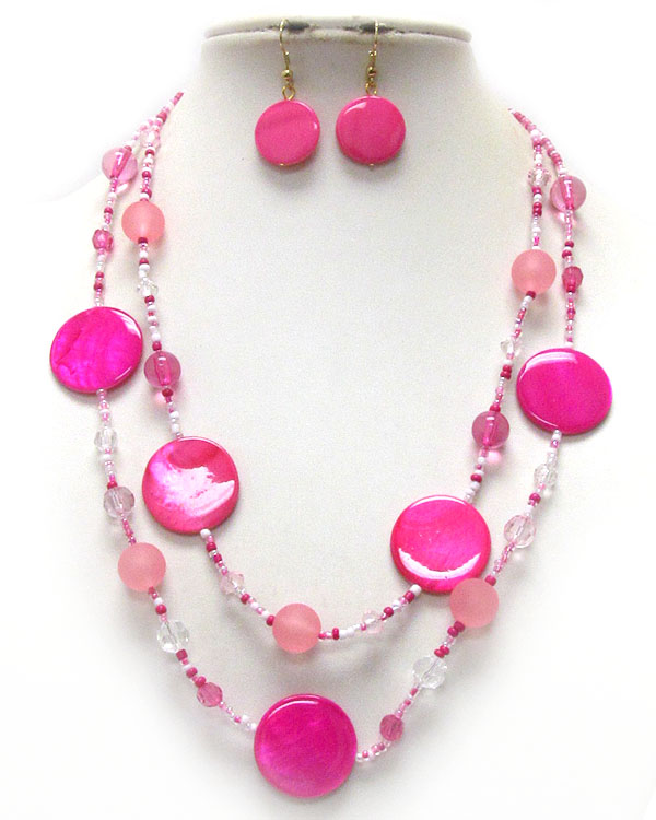 WHOLESALE SHELL DISK AND CHIP STONE DOUBLE LAYERED NECKLACE EARRING SET 392176