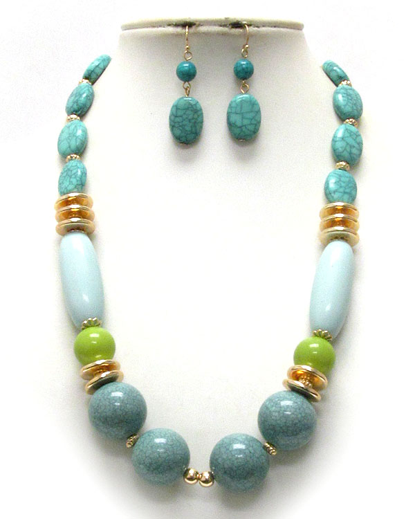 WHOLESALE MULTI SHAPE AND MATERIAL STONE LINK NECKLACE EARRING SET 392210