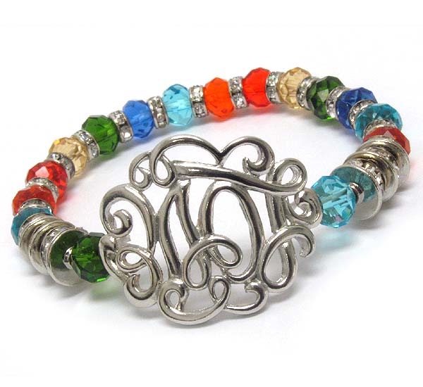 WHOLESALE LOVE MONOGRAM AND GLASS AND CRYSTAL RONDELLE STRETCH BRACELET 392265