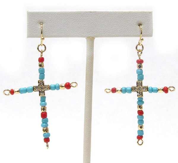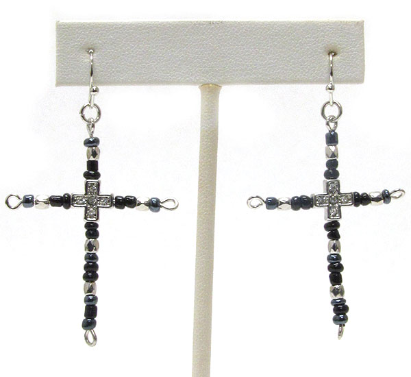 WHOLESALE CRYSTAL CENTER AND BEAD CROSS EARRING 392267