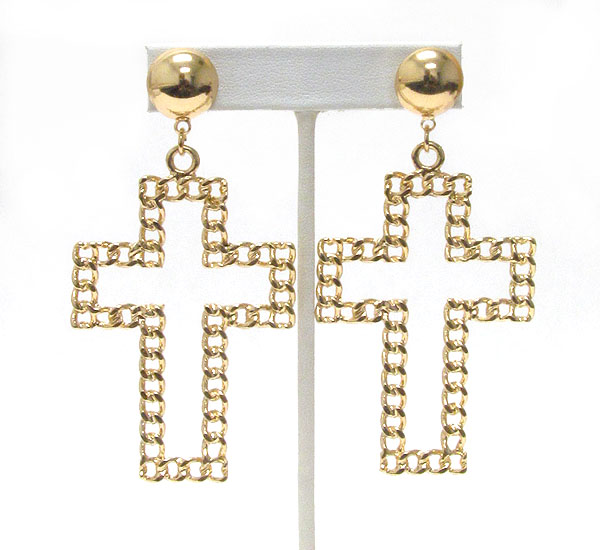 WHOLESALE THICK CHAIN CROSS DROP EARRING 392689