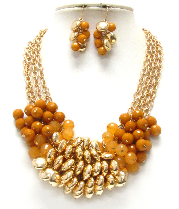 WHOLESALE CHUNKY MULTI FACET ACRYLIC BALL AND METAL CHIP DECO AND MULTI CHAIN NECKLACE EARRING SET 392849