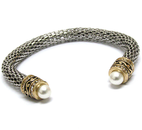 WHOLESALE CRYSTAL AND PEARL DECO MESH BODY CUFF BRACELET 392856