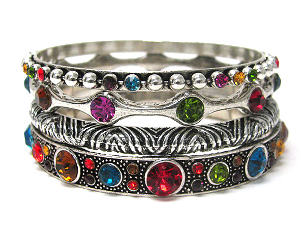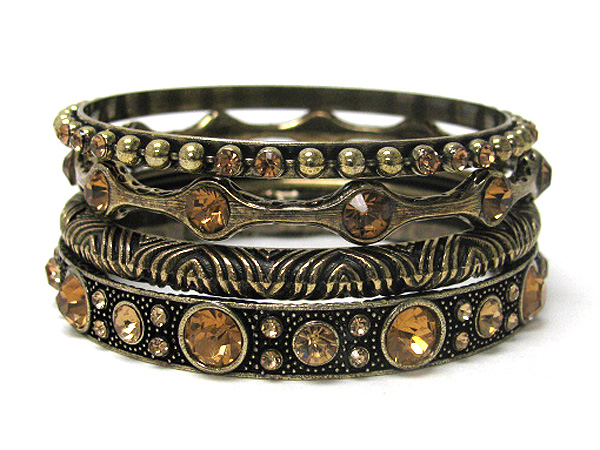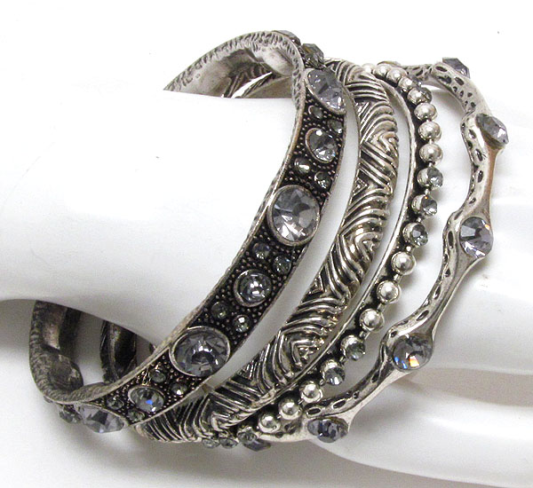 WHOLESALE CRYSTAL DECO MIXED METAL BANGLE SET OF 4 392912